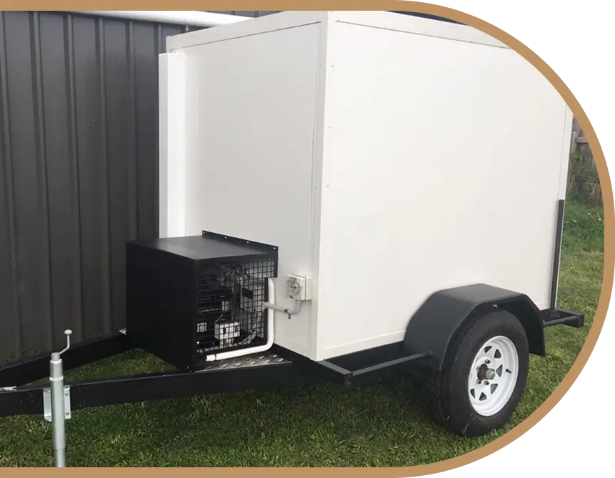 Mobile Coolrooms Ideal for any location, our trailer-mounted mobile cool rooms are easy to tow and position. Maintained at a food-safe 4°C or below, they are perfect for everything from wedding cakes to kegs.